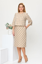 Платье прямого силуэта, длиной ниже колена, со спущенной линией плеча и рукавами на основе цельнокроеного. Спинка и перед с горизонтальной кокеткой. Застежка спереди на планку и петли-пуговицы. Воротник рубашечный на стойке. По линии бёдер диагональный подрез. По переду нижней части платья глубокая складка. Пояс в комплекте.