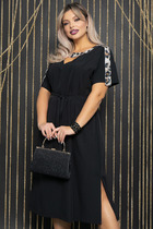 Очаровательное платье в сиреневом оттенке. Оно прямого силуэта, рукав 3/4 с манжетом. Вырез округлый, сзади на пуговице. Выполнено с нежным кружевом на трикотаже и легким блеском, идеально для торжеств и других мероприятий. Станет вашей визитной карточкой, подчеркивая вашу красоту и уверенность в себе. По бокам разрезы.