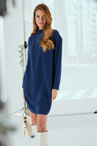 Создайте свой неповторимый стиль с нашим платьем, которое сочетает в себе элегантность и комфорт. Его верх выполнен в свободном крое, а юбка облегающая и имеет разрез спереди, что придает образу нотку дерзости и женственности. Благодаря округлой горловине на резинке, вы сможете легко менять стиль — просто опустите её на плечи, и ваш образ станет более романтичным и нежным. Широкие рукава на резинке внизу можно поднять до локтя, что придаст наряду игривость и очарование. В комплекте идёт пояс из основной ткани, который подчеркнёт вашу талию и придаст образу завершенность.