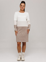Платье на бретелях полуприлегающего силуэта из ришелье. По переду и спинке притачной пояс. На лифе переда нагрудные вытачки, на спинке – талиевые. Нижняя часть платья со сборкой по линии притачивания с поясом. В боковом шве потайная молния.