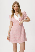 Платье женское свободного силуэта на подкладке. Горловина округлой формы на окантовке, переходящей в завязки разреза по переду. Перед с кокеткой, в шов притачивания которой вставлены воланы. Выше линии талии выполнен подрез, в который вставлен волан. Лиф переда со средним швом, вверху которого разрез и талиевыми вытачки. Нижняя часть переда со сборкой. Спинка на кокетке. Рукав втачной одношовный, длинный, по низу на резинке.