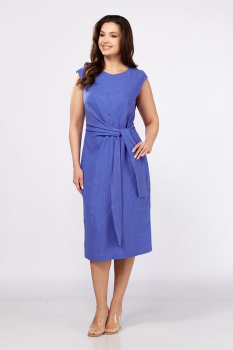 Платье полуприлегающего силуэта , слегка зауженное к низу. Спинка со средним швом и шлицей. Горловина округлой формы , по спинке с застёжкой на пуговицу и навесную петлю.По переду средний шов , нагрудные вытачки, на уровне талии декоративные складки, переходящие в пояс.