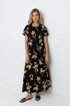 Повседневное платье в стиле бохо, выполнено из искусственного льна-вишера. Струящаяся по фактуре ткань, благодаря свободному прилеганию, создает кокон оберегающий от зноя и палящего солнца. Короткий рукав, который можно регулировать хлястиком на пуговице. Ассиметричная, функциональная застежка переходит в драпирующийся карман, с противоположной стороны карман спрятан в боковой шов. По бокам изделия разрезы. Изделие может сочетаться как с кедами, босоножками, так и туфлями. Универсальность и практичность платья сделают его любимым в Вашем гардеробе в наступающем летнем сезоне. Длина по спинке 128 см, длина рукава 26 см. Изделие подойдет на рост 170 см
