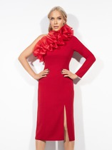 Нарядное двухслойное женское платье на облегченной подкладке идеально подойдет для любых торжеств, а также и для повседневной носки. Это платье больших размеров станет настоящим акцентом в вашем гардеробе. Интересная расцветка и легкий струящийся шифон придают ему эффектный вид, а завязки на рукавах делают изделие ещё более выразительным. Платье свободного силуэта в трапециевидном крое с округлой горловиной и длиной ниже колена, что подчеркивает ваши достоинства, скрывая недостатки и не сковывает движений. По переду – косой подрез и волан на сборке из-под него, украшенный кольцом со стразами, что добавляет нотку элегантности. Спинка прямая, что делает это платье не только стильным, но и удобным для носки. Не упустите возможность добавить это уникальное платье больших размеров в свой гардероб – оно идеально гармонирует как с обувью на каблуке для вечерних выходов, так и с удобной обувью для повседневной жизни! Длина изделия 110 см (+-1 см), длина рукава 49 см. Изделие подойдет на рост 170 см. На моделях представлены 50 размер и 56 размер данного платья.