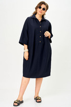 Свободный А-образный крой деликатно скрывает нюансы фигуры и красиво движется в шаге. Рукав 3/4 делает платье идеальным для переходного сезона, а декоративные клапаны «заземляют» принт, добавляя образу собранности и универсальности. Сзади аккуратная молния для удобной посадки.
