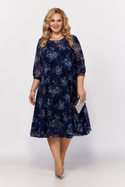 Нарядное платье свободного силуэта выполнено из плиссированной ткани, поставлено на трикотажную подкладку.  На полочке обработаны подрезы, края заработаны флешем. Рукав втачной, до локтя, слегка расклешен. Спинка идентична полочке, горловина окантована. Платье декорирована цветком. В этом платье прекрасно скрываются все недостатки фигуры, а благодаря легкости ткани ваш образ будет воздушным и нежным!