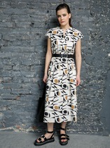 Летнее платье полуприлегающего силуэта, со слегка расширенной к низу юбкой выполнено из хлопковой ткани и кружева. Платье отрезное по линии талии, с мягким поясом, завязывающимся на бант. Платье с рельефами по лифу и с центральной застежкой на навесные петли и пуговицы. Центральная часть платья по лифу из кружева поверх основной ткани. Платье с карманами и декоративными защипами по юбке. Юбка платья с нижним воланом из кружева на просвет. Шов притачивания волана декорирован настроченной тесьмой. Рукав платья втачной, короткий, слегка расширен к низу, с защипами по центральной части. Низ рукава декорирован притачной тесьмой.
