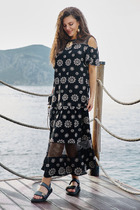 Нарядное платье полу-прилегающего силуэта, выполнено из плиссированной ткани и кружева. Горловина округлой формы, на обтачке, лиф платья отрезной по линии талии, выполнен из кружева, в качестве подкладки атлас. Юбка платья расклешенного силуэта, выполнена из плиссированной ткани, по линии талии аппликация из кружева. Спинка идентична полочке, отрезная по линии талии, верх из кружева, юбка из плиссировки, со средним швом и вытачками, в среднем шве потайная молния. Рукав втачной, расклешенный, оптимальной длины, выполнен из плиссировки. Эффектное, нарядное платье прекрасный выбор для торжественных мероприятий!