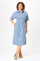 Легкое, летнее платье полу-прилегающего силуэта, выполнено из хлопковой ткани, на хлопковой подкладке. Лиф платья отрезной по линии талии, с защипами по лифу и широким, притачным поясом из основной ткани. Горловина платья округлой формы, на подкладке, застежка по переду на петли-пуговицы, пуговица большая-функциональная, маленькая-декоративная. Юбка платья расклешенного силуэта, присборена по линии талии, спинка идентична полочке, с отрезным поясом по линии талии, на резинке, в боковых швах обработаны карманы.. Рукав втачной, длиной 3/4, по окату застрочены защипы, по низу рукава притачная манжета с разрезами, фиксируется на завязки. Эффектное платье выполненное из натуральной ткани с интересными конструктивными элементами отличный выбор для вас!