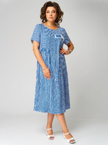 Легкое, летнее платье полу-прилегающего силуэта, выполнено из хлопковой ткани, на хлопковой подкладке. Лиф платья отрезной по линии талии, с защипами по лифу и широким, притачным поясом из основной ткани. Горловина платья округлой формы, на подкладке, застежка по переду на петли-пуговицы, пуговица большая-функциональная, маленькая-декоративная. Юбка платья расклешенного силуэта, присборена по линии талии, спинка идентична полочке, с отрезным поясом по линии талии, на резинке, в боковых швах обработаны карманы.. Рукав втачной, длиной 3/4, по окату застрочены защипы, по низу рукава притачная манжета с разрезами, фиксируется на завязки. Эффектное платье выполненное из натуральной ткани с интересными конструктивными элементами отличный выбор для вас!