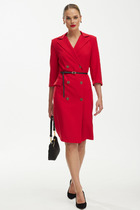Женское платье Х-силуэта выполнено из атласа «леопард» длиной миди. По переду нагрудные вытачки. Спинка со средним швом. По линии талии настрочена кулиса в которую вдет декоративный шнур, имеется фиксатор и наконечник.V-образный вырез горловины. Рукав втачной одношовный с притачной манжетой. Центральная застежка на 7 пуговиц и петель.