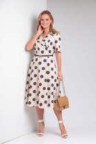 Платье А-силуэта выполнено из льняной ткани. Горловина округлой формы, обработана обтачкой. По переду нагрудные вытачки застрочены защипы. Платье украшает авторская печать по переду. Рукав одношовный , кроткий с защипами. По бокам расположены карманы. Спинка со средним швом. По низу платья отрезной волан с легкой сборкой. Платье без подкладки