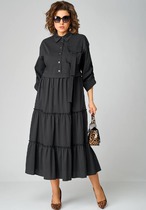 Платье полуприлегающего силуэта. Перед с нагрудными вытачками. Спинка со средним швом, заканчивающимся шлицей. Рукава втачные одношовные. Горловина обработана бейкой из основной ткани. Платье без пояса.