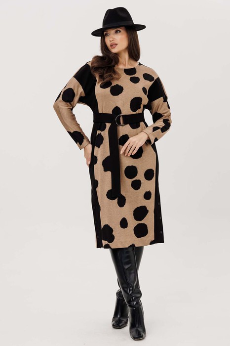 Совместные покупки Нижневартовск Женская одежда Платья — Платье MisLana 1238 бежевый с черными кругами