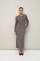 Платье трикотажное на подкладке. Платье выполнено из трикотажного полотна с ажурным (кружевным) рисунком. Полотно средней плотности, эластичное, с мягким прилеганием по фигуре. Изделие полуприлегающего силуэта, длиной миди, с V-образным вырезом горловины и длинным втачным рукавом. Низ рукавов и низа изделия обработан фигурным краем полотна, что придаёт модели завершённый декоративный акцент. Для комфортной посадки предусмотрена трикотажная подкладка по всей длине изделия.
