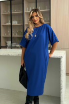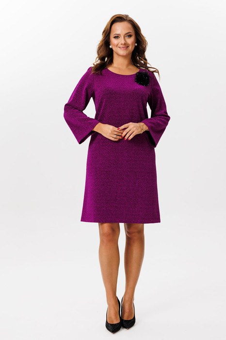 Нарядное платье, выполненное из крепа на трикотажной основе с тоненькой нитью люреска (тянется). Платье А-силуэта. Спинка со средним швом. Горловина округлой формы, обработана окантовкой. Рукава втачные, одношовные, расширенные к низу. Платье декорировано съемным цветком на булавке (цветок может отличаться от фото). Платье без подкладки.