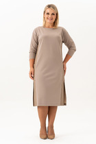 Стильное женское платье полуприлегающего силуэта, выполнено из эластичной джинсовой ткани. По переду кокетки с отлетным краем, рельефы, переходящие в линию кармана с листочкой, накладные карманы. Застежка центральная с отрезной планкой на петли и пробивные болты. Спинка со средним швом и талиевыми вытачками. Рукава втачные, одношовные с отрезными манжетами и разрезом по середине. Воротник отложной рубашечного типа. По боковым швам платья и среднему шву спинки настрочные шлевки для пояса, который выполнен из основной ткани. Платье без подкладки.