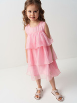 Платье нарядное для девочки полуприлегающего силуэта с втачными короткими рукавами. Платье отрезное по линии талии, полочка и рукава выполнены из ткани с пайетками, юбка пышная с 2-мя слоями сетчатого фатина на подкладке, верхний слой юбки декорирован по