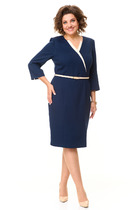 Эффектное платье длиной миди, отрезное по линии талии.По переду нагрудные вытачки переведены в талиевые. Лиф спинки со средним швом, талиевыми и плечевыми вытачками. Юбка со складками на линии талии, расширена к низу. В среднем шве спинки застежка на потайную молнию. Горловина обработана обтачкой. Рукава широкие, втачные,одношовные. По окату рукава заложены мягкие складки. Нижний срез рукава со сборкой. Карманы в боковых швах. В комплект к платью ремень не идёт.