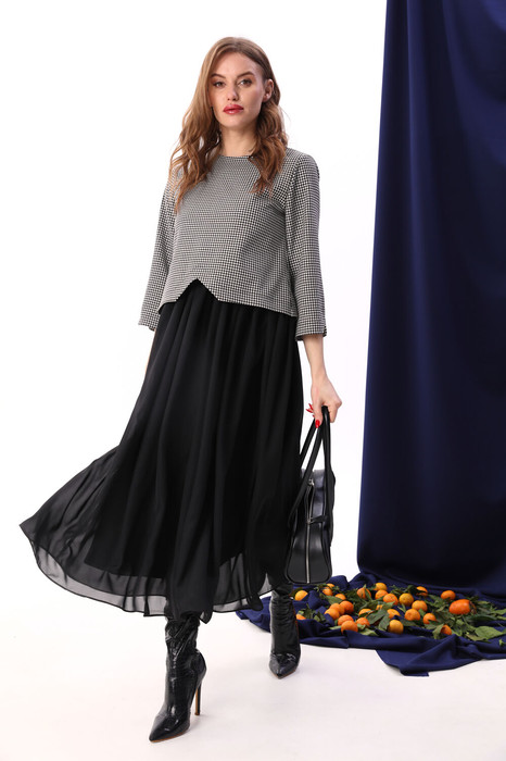 Совместные покупки Нижневартовск Женская одежда Платья — Платье NIKVA н740-10 чёрный+чёрно-белая гус лапка