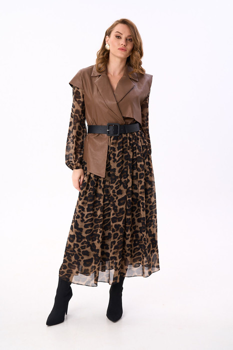 — Платье NIKVA н904-7 шоколад и шоколадный леопард