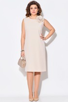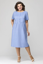 Комбинированное платье, состоящее из лифа и юбки. Лиф прямого кроя с втачным рукавом с манжетой и патой на кнопки. Горловина обработана рубашечным воротником с отрезной стойкой. Застёжка центральная на кнопки. Юбка А-силуэта на подкладке.