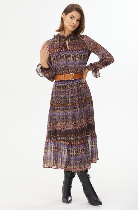 Изящное модное платье из итальянского шифона. Модель свободной формы, по линии талии вставлена резинка, расширенное к низу. Платье отрезное чуть выше линии талии с двумя ярусами воланов. Пояс в комплекте.