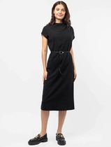 Платье прямого покроя из костюмной ткани. Модель сочетает в себе женственность и удобство.. Горловина переда декорирована планками с дизайнерскими пуговицами.В боковых швах сделаны шлицы для удобства ходьбы. Пояс идёт в комплекте.