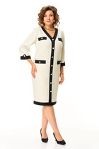 Платье прямого покроя. Модель сочетает в себе женственность и удобство. Перед платья декорирован дизайнерской вышивкой. По спинке платья планка с пуговицами .