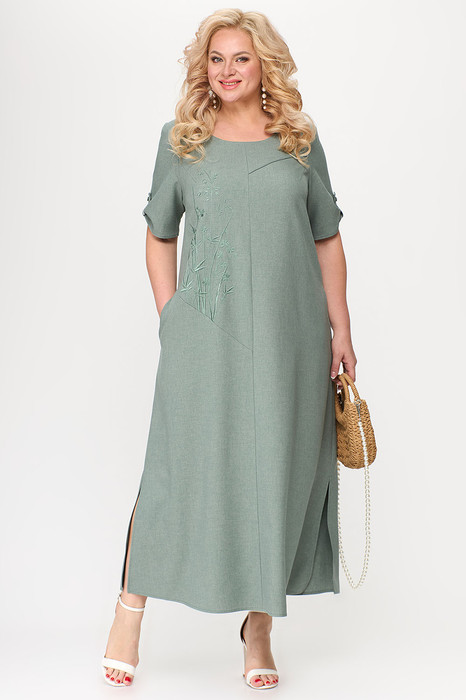 Комфортное платье А-силуэта с цветочными мотивами смотрится очень оригинально и интересно. Асимметричный перед со средним швом и диагональными подрезами вверху и в области бедер гармонично фрагментируют фигуру и наполняют образ легкостью. В боковых швах есть разрезы и функциональные карманы. Нагрудные вытачки создают прилегание в области груди. Спинка со средним швом, рукав короткий, с патой и пуговицей. Модель украшена изящной вышивкой. Платье идеально впишется в Ваш образ.