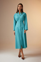 Каждая женщина хочет быть красиво одетой и выглядеть элегантно, ощущая при этом комфорт. Платье из ткани плиссе поможет Вам воплотить задуманное в реальность: оно легкое, удобное в носке, выполнено из мягкой, тонкой и шелковистой ткани, приятной к телу. Легкое винтажное платье с подкладом, обеспечивающим дополнительную защиту от просвечивания, будет уместно в любое время года за счет своей длины миди и свободных рукавов. По спинке, на горловине, обработана капелька на навесную петлю и пуговицу. Рукав втачной, длиной 3/4 с фигурным низом с односторонними складками, с притачной манжетой. А для тех, кто хочет подчеркнуть линию талии и сделать силуэт слегка облегающим – этого легко добиться, добавив пояс из своего гардероба. Однотонное платье сочетается с различными аксессуарами и обувью, позволяя Вам собрать множество новых уникальных вариантов носки. Этот наряд будет отличным выбором для мамы или подружек невесты на свадьбу, ведь он сочетает в себе элементы винтажного стиля с современными модными трендами.