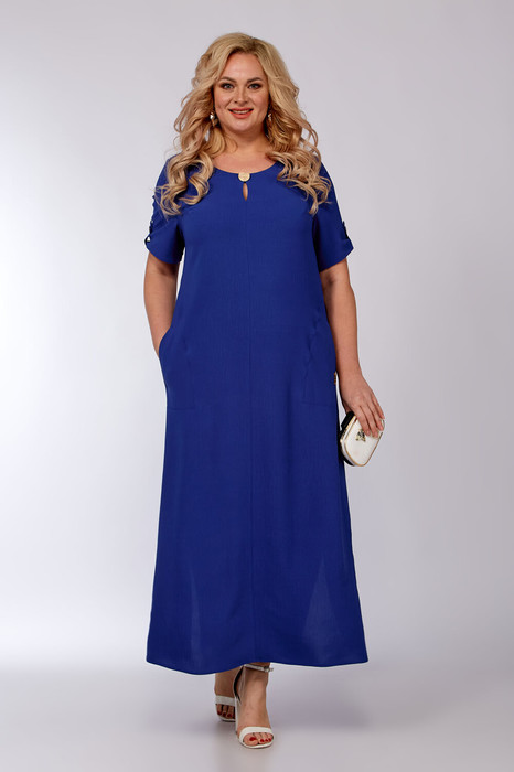 Летнее, удобное, стильное, красивое и легкое платье   расширенного к низу. Выполненное из качественного, не мнущегося и очень приятного к телу материала, платье отлично сядет на фигуру. На передней полочке - вставки, на которых обработаны прорезные карманы с листочкой и декоративной нашивкой. Нагрудная вытачка из проймы переда, капелька по среднему шву полочки, которая декорирована пуговицей. В боковых швах -  разрезы. Спинка со средним швом. Рукав короткий, с патой на петлю и пуговицу. Шикарно смотрится как с туфлями на каблуке, так и с кедами. Простое в уходе, универсальное, базовое платье больших размеров неоднократно порадует Вас как на свадьбе, день рождения, корпоративе, или просто в повседневной жизни!