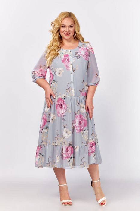 Легкое, воздушное платье из шифона на трикотажной подкладке для женщин подарит ощущение летнего бриза даже в самый знойный день. Этот элегантный наряд обязательно привлечет внимание окружающих! Нежный дизайн ткани добавляет шарм и делает его по-настоящему женственным. Крой А-силуэт нарядного изделия подходит как для повседневного образа, так и для особых случаев. Силуэт модели выделяет женственность фигуры и делает образ стильным. Платье создано для тех, кто предпочитает удобство и стиль в одном флаконе. Миди-длина платья и воланы подчеркнут грацию фигуры и добавят загадочность Вашему образу. Перед платья частично на застежке на петли и пуговицы. Рукав втачной, 3/4, по низу на резинке. Выбрав эту модель, Вы точно будете выглядеть неповторимо на любых мероприятиях!