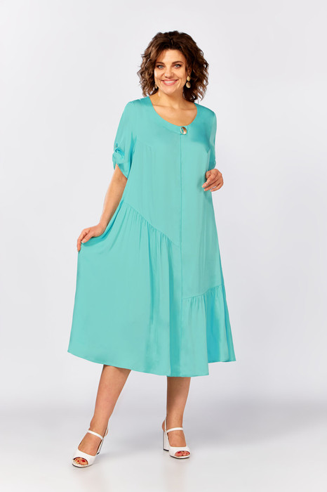 Одно платье длины миди на все случаи жизни? Да! Наше стильное летнее платье можно носить как праздничное, а потом с легкостью трансформировать его в повседневное. Шикарно смотрится как с туфлями на каблуке, так и с кедами. Меняйте свой образ в зависимости от настроения! Платье прямого силуэта расширенного к низу выполнено из натурального вискозного полотна. На полочке и спинке обработаны асимметричные друг другу воланы. По центру переда проложен кант. На горловине полочки обработана планка, которая декорирована пуговицей. Рукав длиной до локтя. На рукаве обработана пата на петлю и пуговицу.