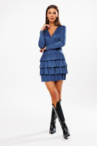 Нарядное однотонное платье из шитья станет красивым дополнением элегантного, женственного образа. Необычная модель трапециевидного силуэта сделает Вашу фигуру грациозной. Платье выполнено из натуральной хлопчатобумажной ткани, которая подарит комфорт в процессе носки. Универсальное и практичное платье в два яруса воланов по низу, собранных на сборку, длиной ниже колена. На переде платья есть нагрудные вытачки, а также цельнокроеная планка, которая декорирована пуговицами и петлями. Вырез горловины круглый. Рукав втачной, короткий. По нижней части рукава есть манжет, который декорирован пуговицей. В модели есть съёмный пояс. Платье на подкладке из натуральной хлопчатобумажной ткани. Подойдёт для посещения деловых мероприятий и торжественных событий, таких как свадьба, выпускной, день рождения.