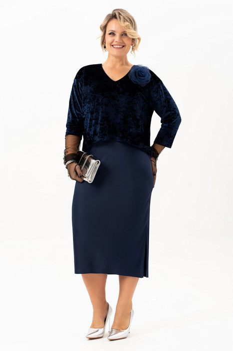 Окунитесь в мир роскоши и элегантности с бархатным вечерним платьем О-образного силуэта имитации костюма. Эта модель, словно сошедшая со страниц модного журнала , станет идеальным выбором для любого праздничного события. Мягкий бархат струится по фигуре, подчеркивая ее изгибы и создавая неповторимый образ. V-образный  вырез горловины придает образу женственность и нежность, а  атлас по низу платья добавляет нотку изысканности. Длина миди делает это платье универсальным, подходящим как для торжественных мероприятий, так и для романтических свиданий. Представьте себя в этом платье на новогодней вечеринке, на свадьбе лучшей подруги или на любом другом празднике – вы будете неотразимы! Кант по горловине изделия  , съемный  бант и удлиненные перчатки из эластичной сетки добавляют изюминку, делая образ еще более привлекательным. Платье  на трикотажной подкладке выполнено из ткани которая обеспечивает  комфорт и свободу движений на протяжении всего вечера. Благодаря отрезному под грудью силуэту, модель идеально садится на фигуру, подчеркивая все ее достоинства.