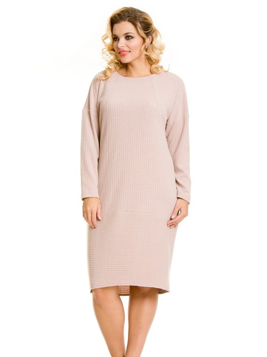 Элегантное платье свободного силуэта с ассиметричным низом, выполнено из эластичного мягкого трикотажного полотна – Лапша. Изделия из ткани лапша стройнят и создают женственный образ. Платье с отрезным низом по переду и спинке. Верх и низ платья выкроены в разном направлении, что создает игру полоски в изделии. Круглый вырез горловины переда и спинки обработан обтачкой. Перед и спинка целые. По горловине переда две вытачки. Платье со свободной заниженной проймой и удлиненной линией плеча, рукав длинный, слегка зауженный к низу. Длина рукава от горловины 61 см., обхват рукава по низу 20 см. Платье без подклада и застежек. ДлинаВ В изделия по спинке в 46 р-ре – 103 см. длина по переду – 100 см.