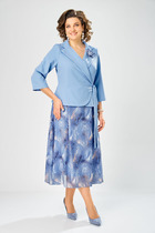 Нарядное платье свободного силуэта выполнено из сетки с бархатным напылением. Перед и спинка платья целые. Платье с ассиметричным фигурным отрезным низом с небольшой сборкой по шву притачивания. Спинка длиннее переда на 12 см. Овальный вырез горловины переда и спинки обработан настрочной окантовкой. Платье с удлиненной линией плеча, рукав втачной прямой. Длина рукава от горловины в 48 р-ре – 43 см. в 58 р-ре – 45 см., ширина рукава по низу в 48 р-ре – 36 см. в 58 р-ре – 42 см. Платье с подкладом. Подклад выполнен отдельно от платья, из тонкого эластичного атласного полотна. Подклад на бретелях, длина бретелей регулируется. Длина подклада без бретелей в 48 р-ре – 80 см. в 58 р-ре –В В 84 см. Платье без застежек. Длина изделия по спинке в 48 р-ре – 112 см., в 58 р-ре -В В 116 см.