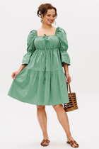 Платье женское полуприлегающего силуэта, покроя спущенное плечо, выполнено из ткани костюмно-плательной группы.