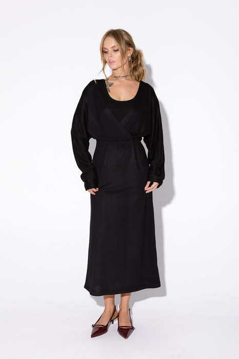 Трикотажное миди-платье с эффектом многослойности.