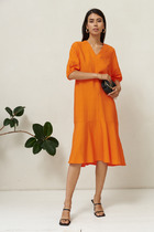 Летящее женственное платье станет идеальным дополнением к вашему образу на Новый год. Эта модель универсальна и подходит для любого праздника, придавая вам женственность, элегантность и праздничное настроение. Платье свободного кроя с длинными рукавами и манжетами по низу. V-образный вырез с эффектом запаха подчеркивает зону декольте. Изделие на подкладке, в комплекте идет атласный пояс.