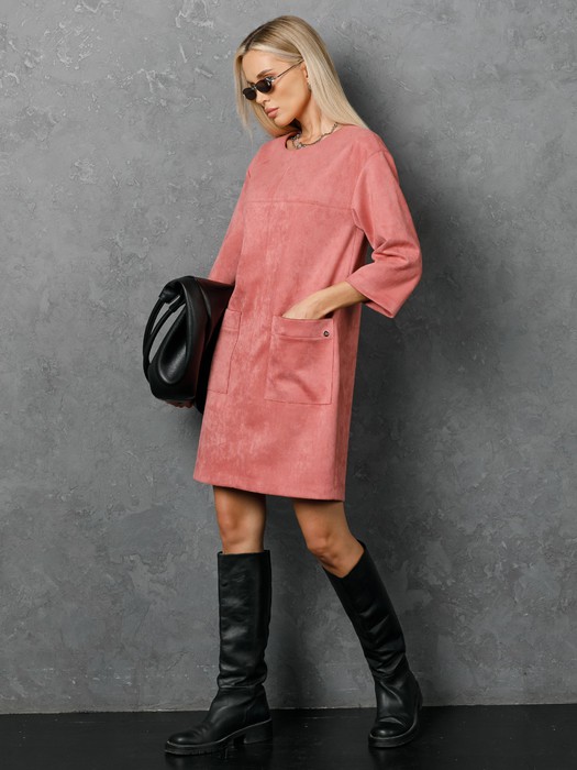 Модель прямого силуэта, со спущенной линией плеча и рукавом 3/4. Перед со средним швом, кокетками и накладными карманами с открытыми срезами. В среднем шве спинки обработана металлическая застёжка молния.