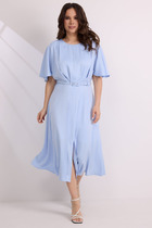Платье полуприлегающего силуэта, на запах, ткань похожа на атлас. Изнутри платье фиксируется на завязки, снаружи платье фиксируется на пришивной пояс.