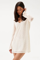 Платье отрезное по линии талии, полуприлегающего кроя, выполнено из плательной струящейся ткани. Горловина с рубашечным воротником на притачной стойке. Лиф с центральной застежкой на потайную планку на петли и пуговицы. По талии обработана резинка для регуляции размера. Юбка с имитацией запаха с застежкой на притачной пояс из основной ткани, который фиксируется на бант. Рукава длинные с притачной манжетой с застежкой на пуговицы.