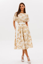 Платье женское, предназначено для повседневной носки. Платье женское, прямого силуэта, длиной за колено. Перед и спинка цельнокроеные. Горловина круглая, с втачной отделочной планкой, шов соединения который декорирован надстрочной отделочной тесьмой. Рукав втачной, длинный, реглан с притачной отделочной манжетой, шов соединения которой декорирован надстрочной декорированной тесьмой. Платье на подкладке. Платье без плечевых накладок. Длина спинки платья 107 см, длина рукава 67 см.