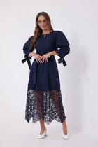 Платье женское из штапельной плательной ткани с набивным рисунком полуприлегающего силуэта, с короткими втачными рукавами, горловиной овальной формы, окантованной основным материалом. В области груди обработаны две вытачки, в боковых швах выполнены разрезы.