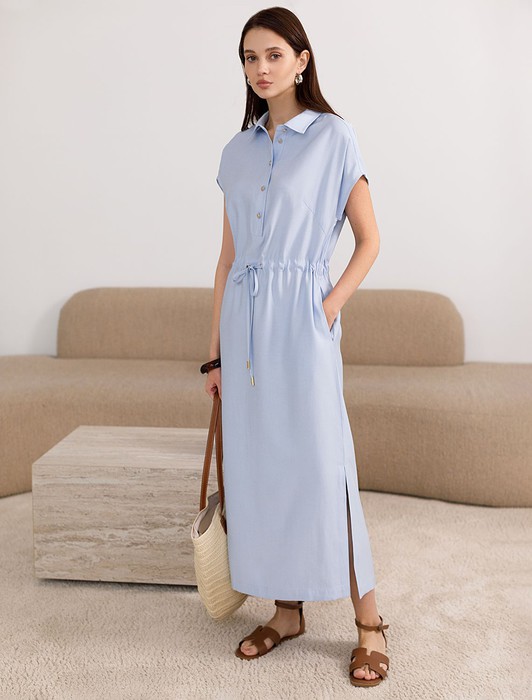 Платье-рубашка с кулиской на талии из плотного лиоцелла