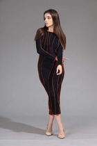 Выполнено из легкой, струящейся смесовой ткани. На спинке платья расположена кулиса, которая позволяет регулировать степень прилегания.