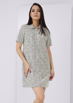 Красивое платье приталенного силуэта. Цельнокроенный рукав оканчивается манжетами на отворотах с патой. Круглый вырез горловины. Модель отрезная по линии талии, присборена на эластичную резинку. В боковых швах имеются функциональные карманы. По передней части юбки выполнена декоративная планка на пуговицах. Низ ровный, без разрезов.