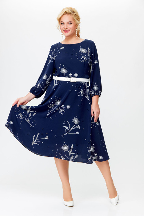 Платье из струящейся поливискозной ткани Х-образного силуэта, отрезное по линии талии. По переду и спинке лифа расположены талиевые вытачки. Юбка расклешённая, на трикотажной подкладке. В среднем шве спинки предусмотрена молния. Рукав втачной, одношовный длиной 4/5. Низ рукава собран эластичной тесьмой. длина рукава 51см (±1см).